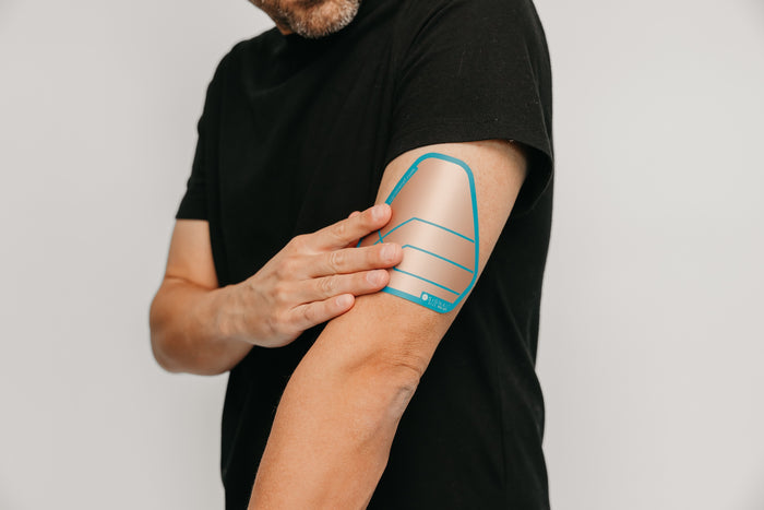 Place the Signal Relief patch above the elbow in the back, where the ulnar nerve enters. Many people refer to this area as their "funny bone." You want to go above that spot.