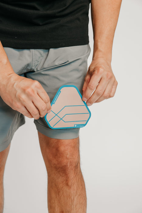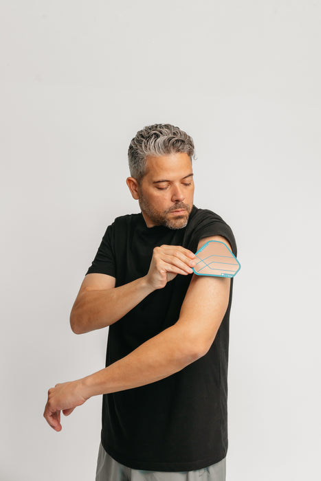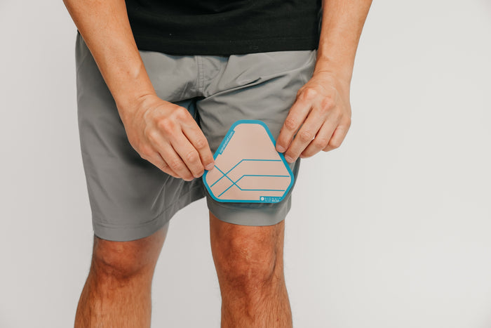 Once you have found the proper placement for relief, secure the patch in place. You can use the included adhesives or simply tuck the Signal Relief patch inside a close-fitting article of clothing such as the waistband of your pants, inside a sports bra, or under a compression sleeve. The Signal Relief patch is most effective when worn in direct contact with the skin; however, skin-to-skin contact is not necessary for relief.
