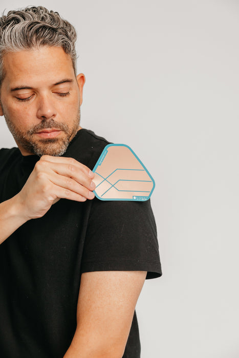 Locate the source of your discomfort before applying the adhesive or securing the patch in place. We recommend placing the patch directly over or approximately 1” above where you feel the most intense discomfort. Don’t get discouraged if you can’t find the proper placement right away! Once the patch is in the right position, you may experience a warming or tingling sensation.