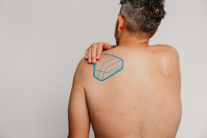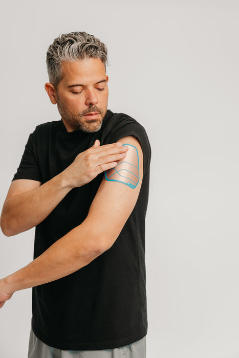Move your arm to find where your shoulder tension is the greatest and hold the patch in place over the area.