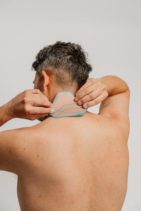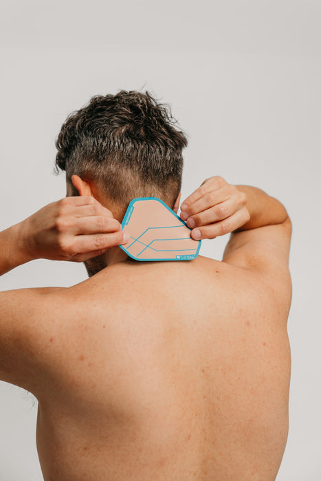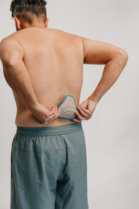 Once you have identified the source of your tension, hold the patch at the lower point on your back where you feel discomfort.